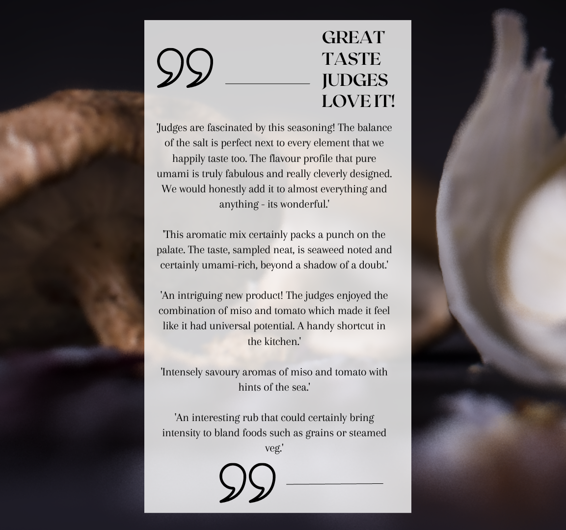 Umazing harnesses natural ingredients to help season your dishes. With bursts of flavour from mushrooms, tomatoes and miso our Umami flavouring can help your cooking flourish.